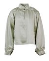 Elegant bluse i myk sateng med delikate detaljer og hekter i halsåpningen.